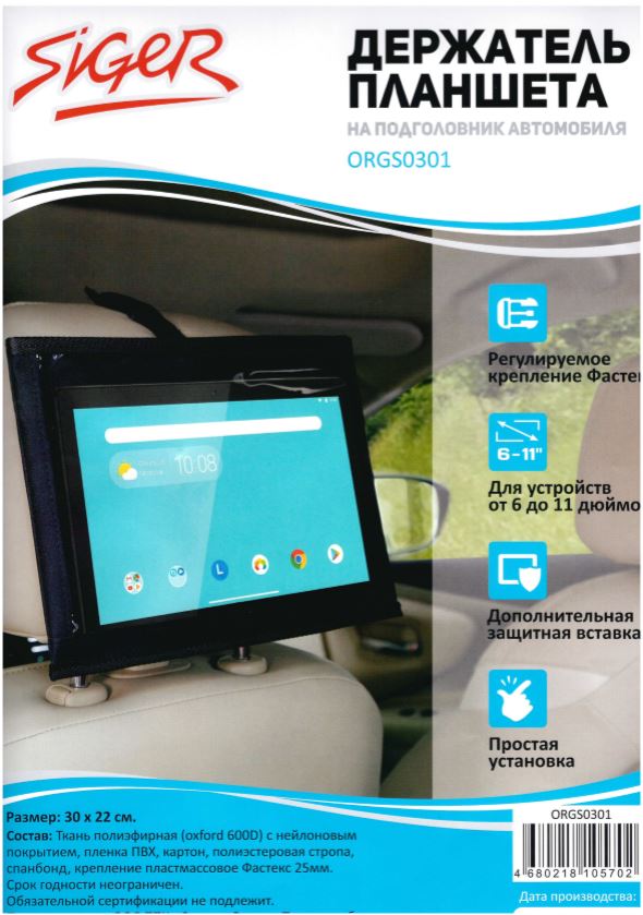 Держатель планшета Siger на подголовник автомобиля тканевый