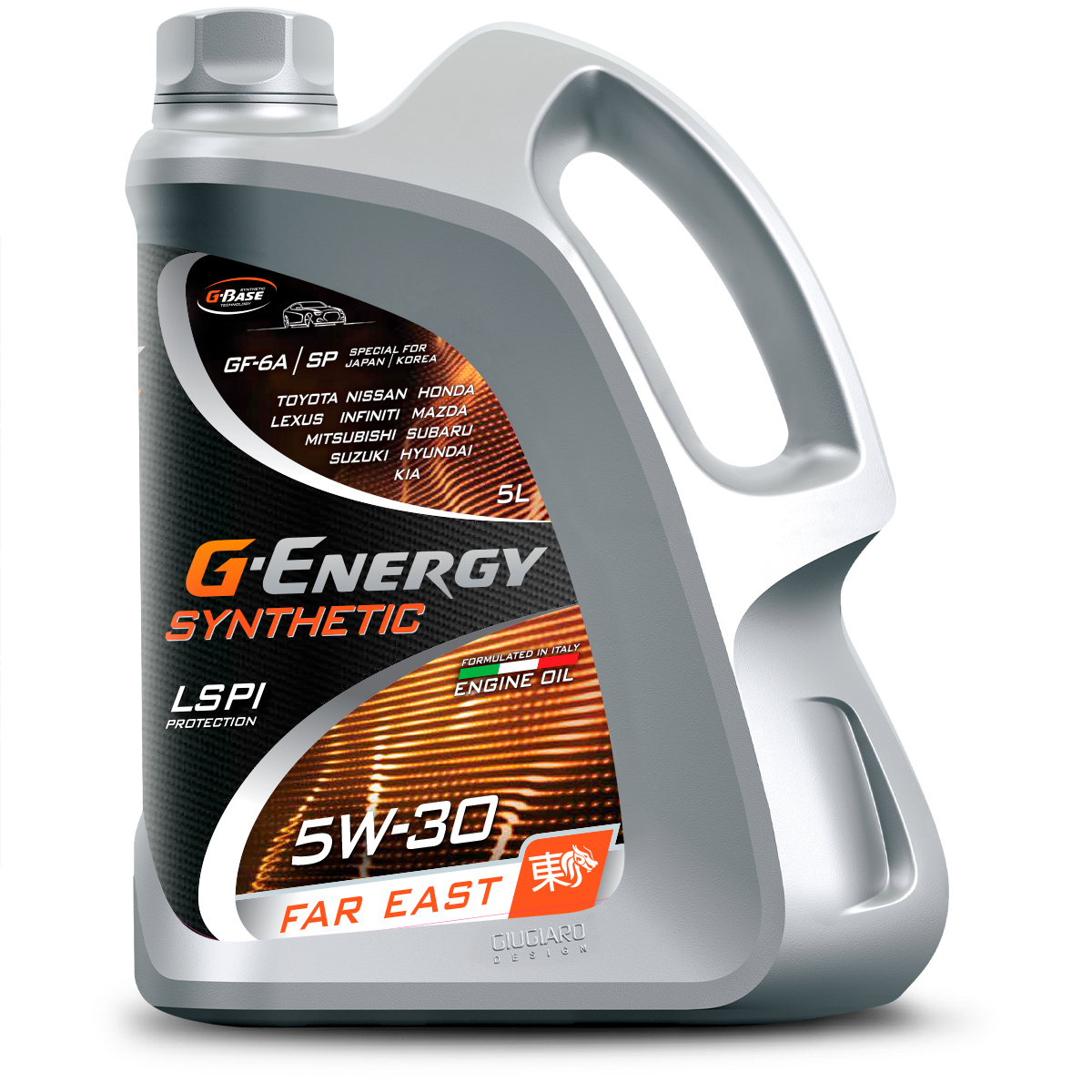 Масло моторное G-Energy Synthetic FarEast 5W-30 - синтетическое энергосберегающее моторное масло на основе базовых компонентов G-Base, предназначенных для бензиновых двигателей японских, корейских, китайских и американских автомобилей. Обеспечивает экономию топлива, максимальную защиту и эффективную работу двигателя во всём диапазоне оборотов в различных скоростных режимах.   Применение:  - Для легковых автомобилей, легких внедорожников, микроавтобусов и легких грузовых автомобилей японских, корейских и других производителей - Для бензиновых двигателей, в том числе оборудованных катализаторами (TWC), где требуется уровень эксплуатационных свойств API SP и ILSAC GF-6A или ниже - Подходит для двигателей с непосредственным впрыском топлива и турбонаддувом   Преимущества: - Разработано специально для автомобилей японского и корейского производства - Обеспечивает экономию топлива по сравнению со стандартными маслами - Сохраняет чистоту деталей двигателя благодаря повышенной стойкости к образованию высокотемпературных отложений (на поршнях и в турбокомпрессоре) - Позволяет максимально реализовать мощность двигателя - Полная совместимость и инертность по отношению к современным материалам уплотнений, предотвращение утечек   Спецификации - API SP, SN - ILSAC GF-6A, GF-5 - dexos1 Gen 2 - Chrysler MS-6395 - Fiat 9.55535 CR1 - Ford WSS-M2C-929-A   Рекомендовано для применения: - Dodge/ Jeep - Toyota/ Lexus - Honda - Mitsubishi - Subaru - Suzuki - Nissan/ Infiniti - Mazda - Hyundai/ Kia - Changan - GAC - BAIC2 * - Перед применением необходимо свериться с руководством по эксплуатации