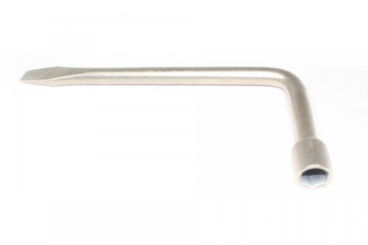 Баллонный ключ применяется для монтажа/демонтажа резьбовых соединений при замене автомобильных колес. Расположенная на оборотной стороне ключа лопатка используется при разбортировании колеса, а также как монтировка. Вылет А и тонкая но прочная торцовая часть рассчитаны на применение ключа с любыми типами колесных дисков. Полная термообработка ключа по всей длине. Размер: 17 мм A: 125 мм d: 16 мм Длина: 275 мм
