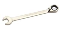 Комбинированный ключ из хромованадиевой стали с надёжным 72-зубцовым храповым механизмом в накидной части. Изменение направления вращения храповика у трещоточного ключа осуществляется рычажным переключателем в теле ключа.  Накидная часть с храповым механизмом выполнена с отклонением 10º от продольной оси для удобства работы. Трещоточный ключ ускоряет отворачивание и заворачивание крепежа как в обычных условиях, так и в условиях ограниченного пространства. Обеспечивает высокий крутящий момент и минимальный угол возврата — 5º.  Никелирование с защитным лаковым слоем обеспечивает дополнительную антикоррозионную стойкость ключа с трещоткой. Трещоточная часть ключа не предназначена для страгивания и силовой протяжки крепежа, для этого применяется рожковый профиль ключа или торцевые головки. A: 29 мм; B: 28 мм; C1: 7 мм; C2: 9 мм; Длина: 190 мм.