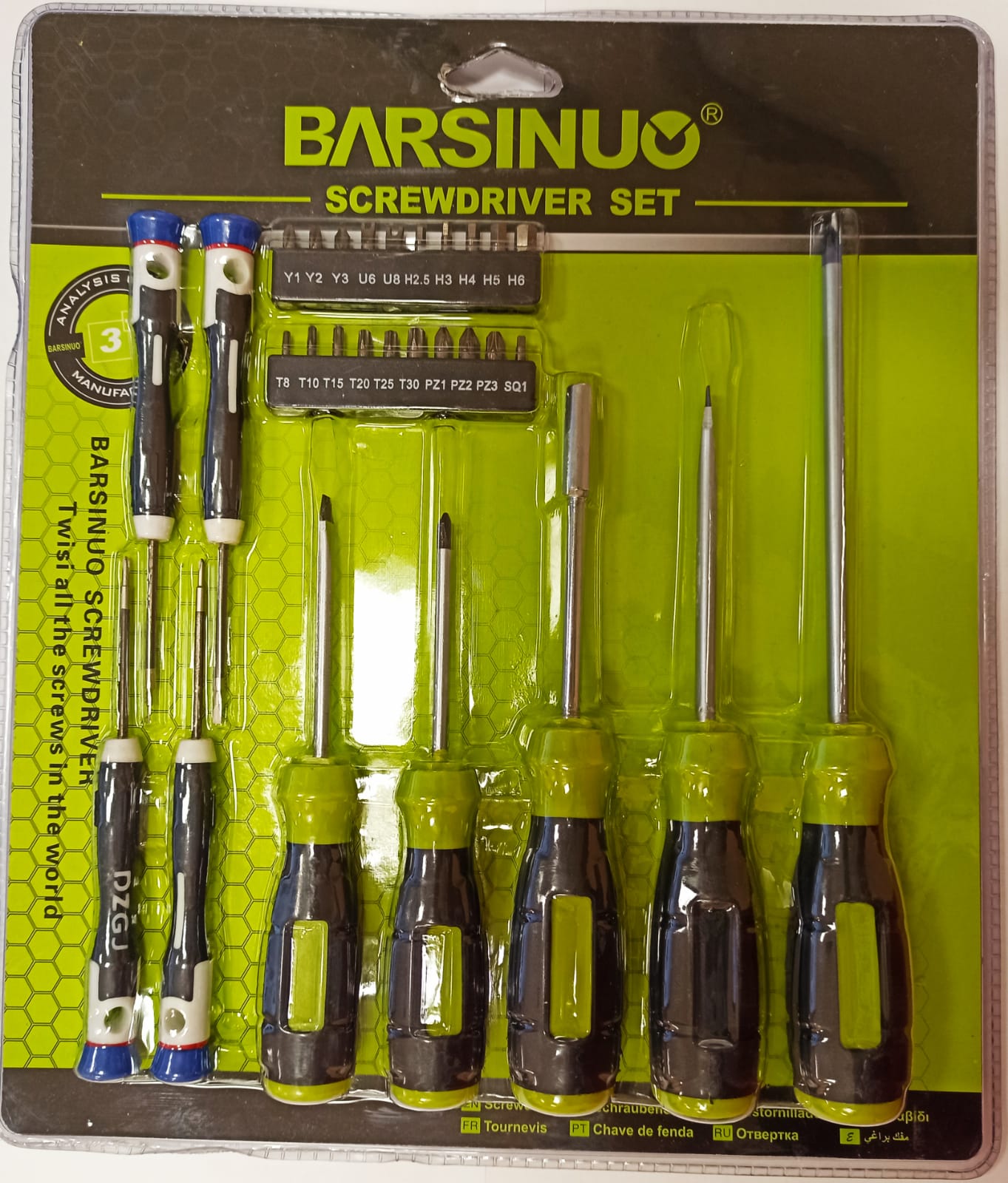 Комплектация: Отвертка: 8шт Отвертка под биты: 1шт. Набор бит 1 (10шт): Y1/ Y2/ Y3/ U6/ U8/ H2.5/ H3/ H4/ H5/ H6/ Набор бит 2 (10шт): T8/ T10/ T15/ T20/ T25/ T30/ PZ1/ PZ2/ PZ3/ SQ1 Материал: CrV   *Производитель оставляет за собой право изменять внешний вид изделия и упаковки, комплектацию и характеристики товара без уведомления продавца. В связи с чем фотография товара может отличаться от оригинала. Уточняйте данную информацию перед покупкой.